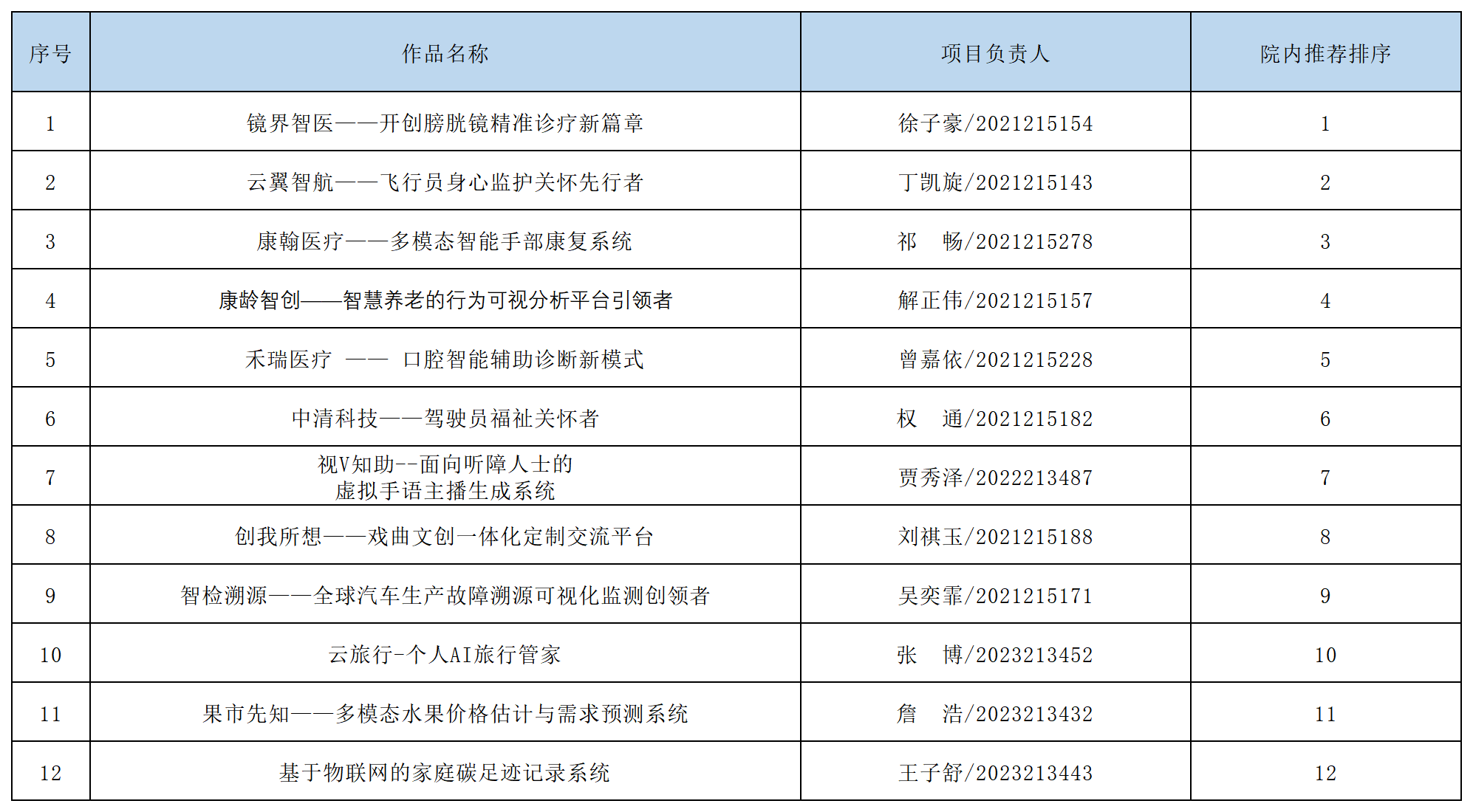 根据《关于举办2024年“挑战杯”老员工创业计划竞赛校内选拔赛的预通知》,学院团委分别开展了2024年“挑战杯”老员工创业计划竞赛院内选拔赛动员、预报名、作品申报等工作。本着公平、公正、公开的原则,经专家评审后,现将校内选拔赛院内作品遴选最终结果(排名按照评审结果顺序)公示如下: