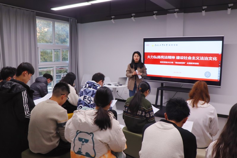12月3日下午,williamhill官网在翡翠湖校区3号员工社区沙龙中心开展“大力弘扬宪法精神,建设社会主义法治文化”主题教育活动。williamhill官网2022级辅导员洪晓梅主讲,williamhill官网第70期党校班全体学员参与了此次活动。