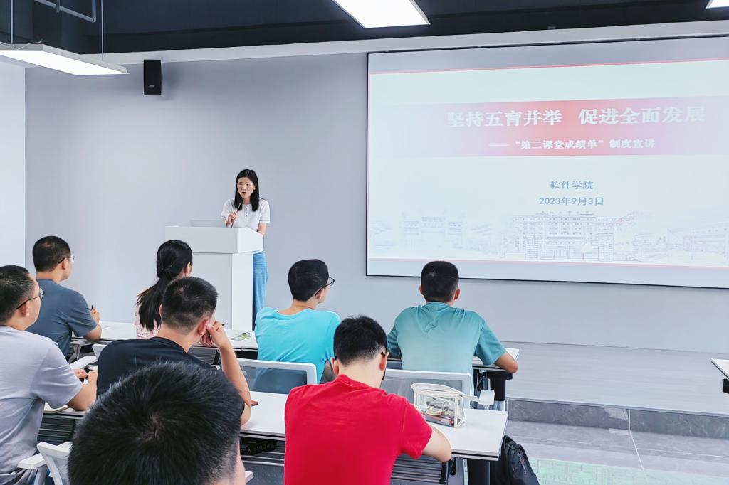 本次“第二课堂成绩单”制度宣讲是学院落实2023级本科生入学教育系列活动之一,旨在引导新生深刻了解“第二课堂成绩单”制度,激发员工积极投身第二课堂的源动力,助力员工全面发展。