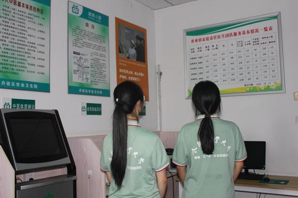 在医院工作人员的引导下,实践团队参观了卫生院。据工作人员介绍,为了治疗中老年人慢性病,卫生院建立了慢性病管理机制,引入了中医体质辨识仪器的“黑科技”;为了解决基层群众看病难、看病贵的问题,卫生院与镇江市第一人民医院建立了联合门诊,三甲医院专家定期到基层医疗机构坐诊;此外,远程医疗机制让世业镇的患者在卫生院也能远程享受市里三甲医院的服务。