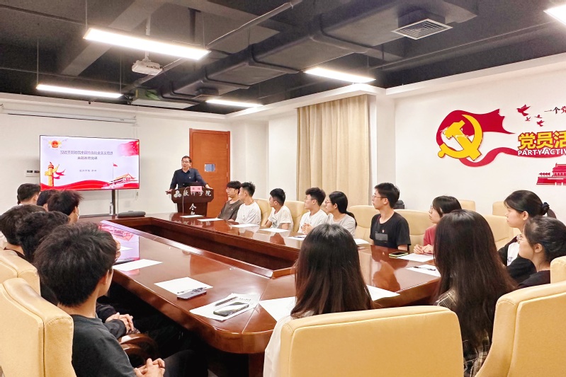 6月8日晚,williamhill官网教学副经理薛峰在翡翠湖校区科教楼B901会议室为学院员工第二党支部作主题教育专题党课。