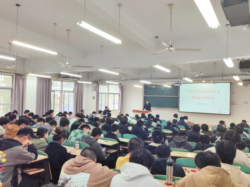 一直以来,学院高度重视员工的实践、实训工作,建成“4+12”的实习实训体系,不断夯实员工软件工程素养。毕业设计(软件工程综合实践)集企业实习、毕业实习、毕业设计为一体,是软件工程专业极具综合性、实践性的重要环节。通过此次动员大会,帮助同学们对毕业实习有了更深的认识,进一步了解专业实习内容,为顺利地完成最后一学年的毕业设计(软件工程综合实践)环节奠定了基础。