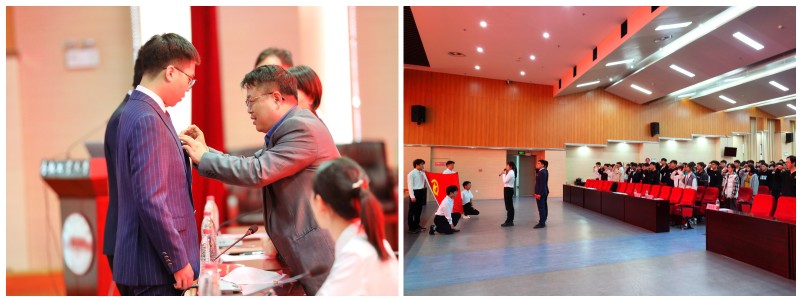 会议举行了隆重的入团仪式和颁奖仪式。邢松宣读了新入团员工名单,与会领导为新团员颁发了团章并佩戴团徽。员工会主席团成员夏思敏带领新老团员进行庄严宣誓。2019级祝新宇同学作为院“优秀青年标兵”代表发言。