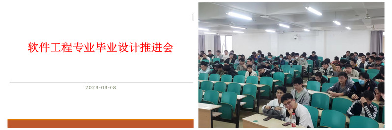 下午的毕业设计员工推进会在翠五教202教室和线上腾讯会议室同步召开,2023届全体员工参加,会议由软件工程副系主任张高峰主持。在会上,张高峰老师介绍了毕业设计和实习的总体进展要求,强调了现阶段的主要任务和要点,指出下一步中期检查的主要目标和任务,要求同学们按照学院统一要求积极主动推动毕业设计工作开展。