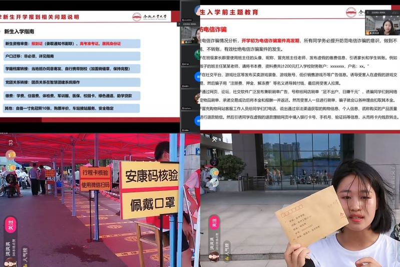 “对话·工大”之话报到。8月17日,2022级新生辅导员洪晓梅通过线上开展新生入学前主题班会,williamhill官网全体新生参会。会上,辅导员详细解读了新生入学指南,认真传达了新生到校后的相关要求,并提醒新生提高防诈骗意识,为员工顺利返校做好准备。8月19日,新生入校报到前夕,辅导员通过抖音平台发布“洪导带你看报到”线上直播,以直播的方式带领新生云体验校园环境、报到环境,详细解读报到流程。