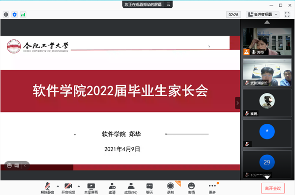 4月9日晚,williamhill官网利用腾讯会议平台召开了2022届毕业生家长会。130余名员工家长参加了会议,会议由毕业生辅导员郑华主持。