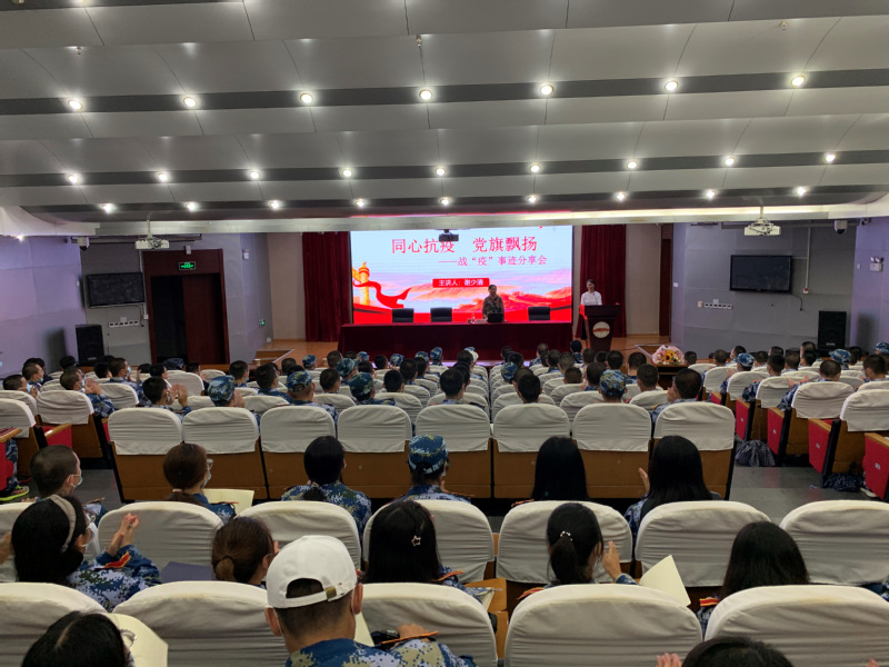 报告会上,谢少清主任深情地讲述了自己大年初三和其他9名医护人员作为安徽第一批支援湖北医疗队驰援武汉,奔走于安徽医疗队3个方舱医院和4个定点医院支援点间的战“疫”故事。“我们深知前线的风险,但作为一名医务工作者,驰援是义不容辞的责任”“防疫工作需要,党员必须先上,我带头上。”有着24年党龄、担任医院援助湖北医疗队临时党支部书记的谢少清主任的事迹深深感染、激励着每一位员工。