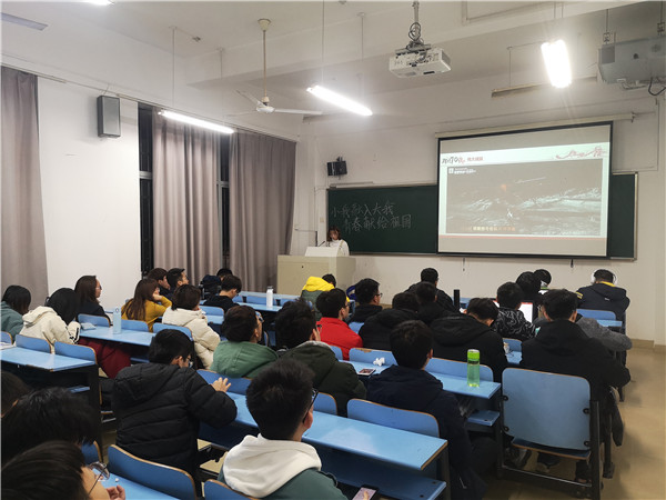 讲好中国故事,增强家国情怀。每个班级分为10组,以小组为单位,每个小组向大家分享一个先进人物的典型事迹。心有大我,至诚报国,矢志创新、勇攀科技高峰、争分夺秒、鞠躬尽瘁,这是黄大年给我们的印象;坚守初心、勇担使命、力戒浮夸浮躁,面向需求、务实求真、力戒纸上谈兵,执着追求、百折不挠、力戒急功近利,这是杨院士多年来坚守教学一线、勇攀科学高峰的真实写照;2019年女排世界杯中,郎平率领的中国女排以“十一连胜庆十一”,就算只有1%的希望,也要尽100%的努力!不到最后一刻,永不放弃。即使穷途末路,也要无所畏惧,坚持到底,正是这种女排精神让我们热泪盈眶、引以为豪……一个个鲜活的事例,一句句真情的讲述,不仅带给同学们一场震撼心灵、洗礼灵魂的精神盛宴,更为大家上了一堂诠释人生价值与意义的生动思政课。