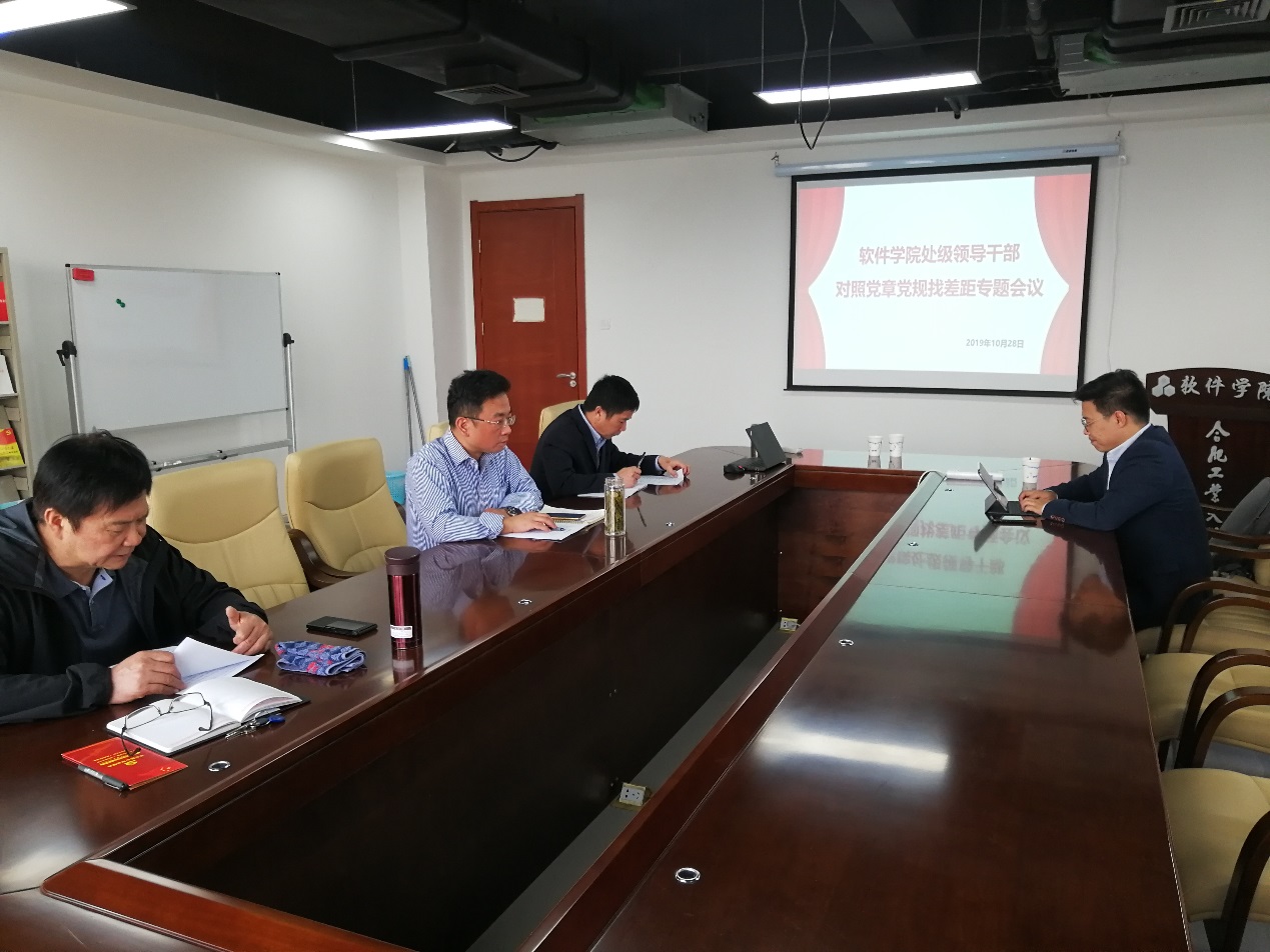 鲁昌华首先汇报了10月28日上午,学院领导班子重新集体学习《中国共产党章程》、《关于新形势下党内政治生活的若干准则》、《中国共产党纪律处分条例》的情况。随后,学院领导班子成员各自分别从紧扣“十八个是否”,全面查找自身问题,实实在在地回答有没有问题,并剖析问题产生的根源,明确整改措施和努力方向。发言结束后,班子成员本着对组织、对工作、对同志负责的态度,咬耳扯袖、提醒警醒。
