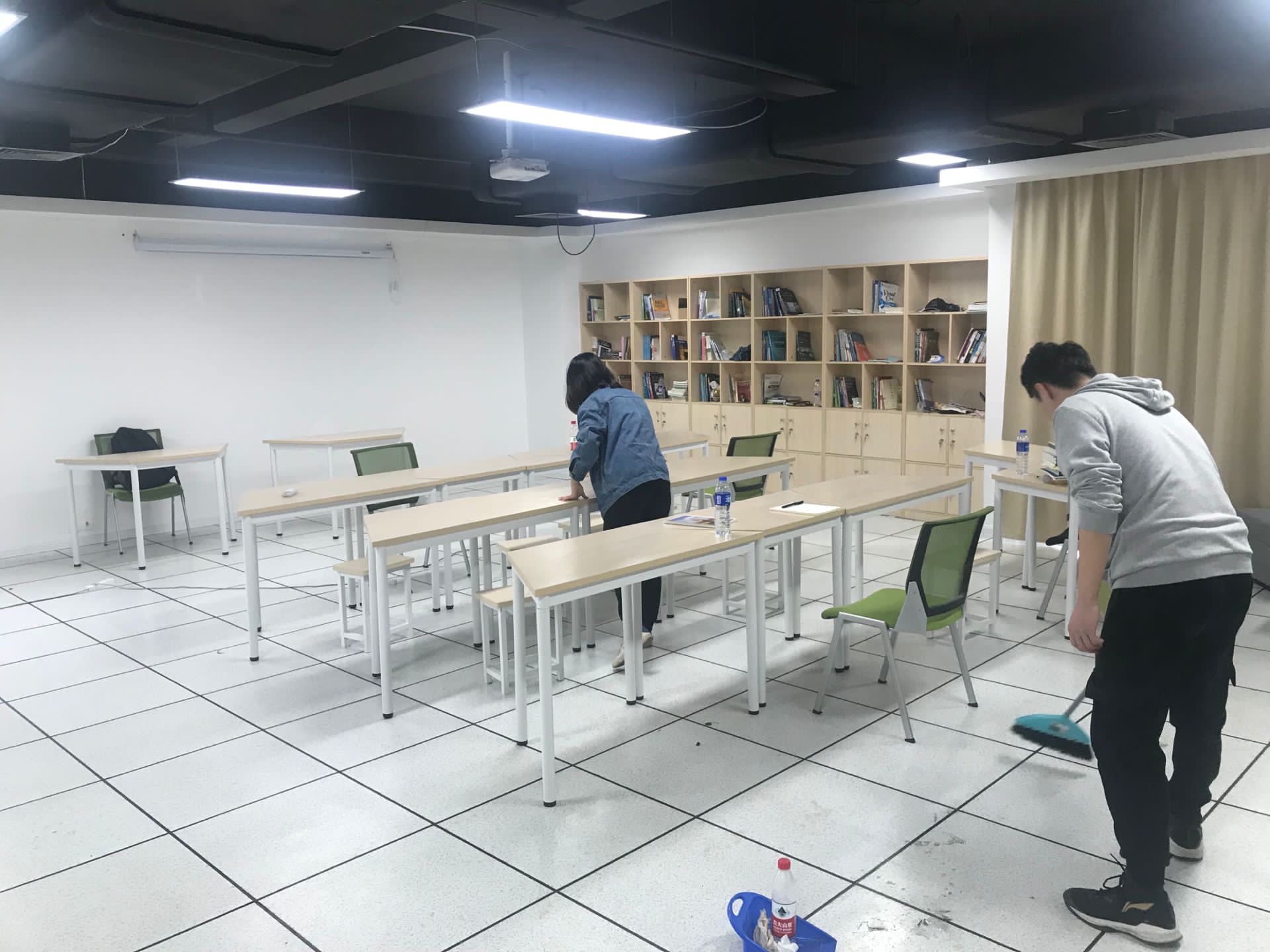 公司的机房、创新工作室、员工会办公室是学院员工学习活动的大本营,维护其干净整洁是每一位williamhill官网员工义不容辞的责任。员工党员充分发挥其先锋模范作用,自备笤帚、簸箕、抹布等各种工具,全面清理了机房地面、桌面以及垃圾。清扫结束后老师和同学都对焕然一新的环境赞不绝口,极大的鼓舞了参与此次活动的员工党员们,也激励着其他员工党员或员工积极投入学院建设,努力发挥自己的力量。