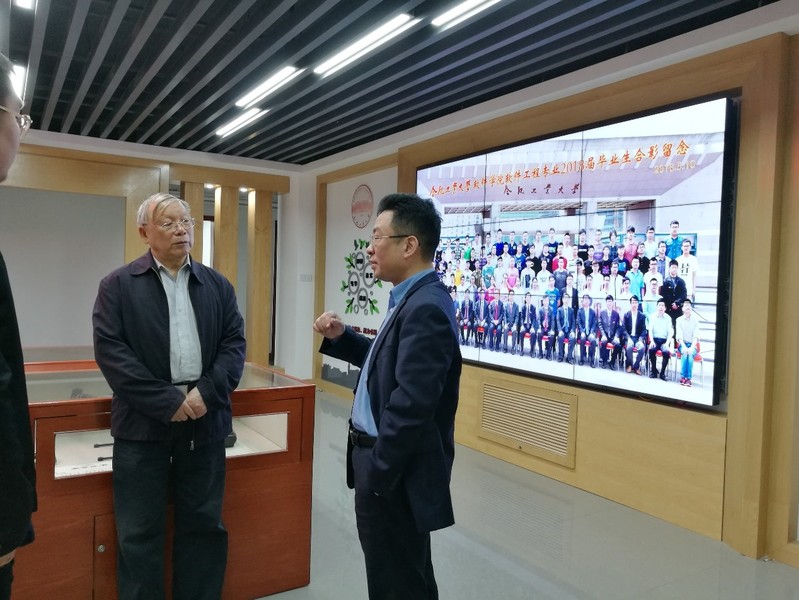 杨学志经理向陈鲸院士介绍了学院基本情况、专业人才培养工作以及软件工程专业的发展现状与前景。陈鲸院士先后参观了公司党建工作展示、老员工创新训练项目成果展示、老员工创新工作室以及员工实验教学专用实验室。陈鲸院士指出,当前信息技术的快速发展对软件工程人才有着迫切的需求,软件工程专业的建设应紧密结合科技发展与行业应用的需求,创新人才培养模式,突出专业培养特色,推动人才培养质量的持续提升。