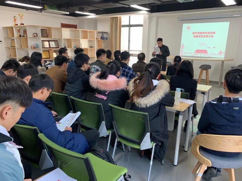 会上,按党员发展程序:一是拟发展对象宣读《入党志愿书》;二是入党介绍人介绍发展对象的培养考察情况,并表示是否同意接收拟发展对象为预备党员的意见;三是支部副书记郑华老师代表支委会向支部大会汇报拟发展对象的政审情况;四是与会人员发表意见,并无记名投票表决,五是宣读会议决议并将决议上报上级党委审批。最后,全体党员在支部纪律委员王佳敏同学的带领下面对党旗宣誓。