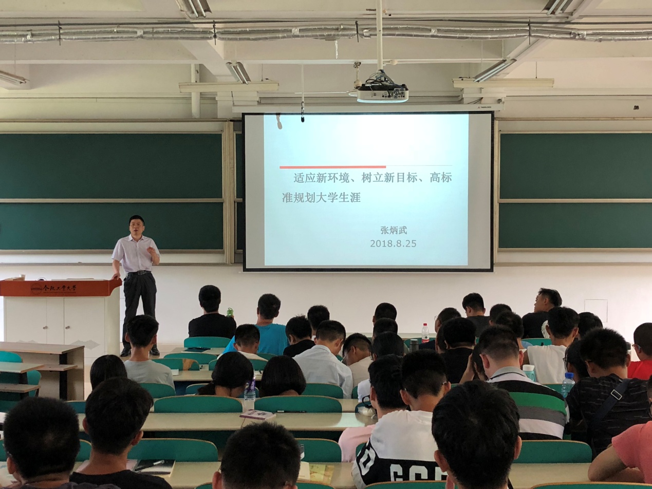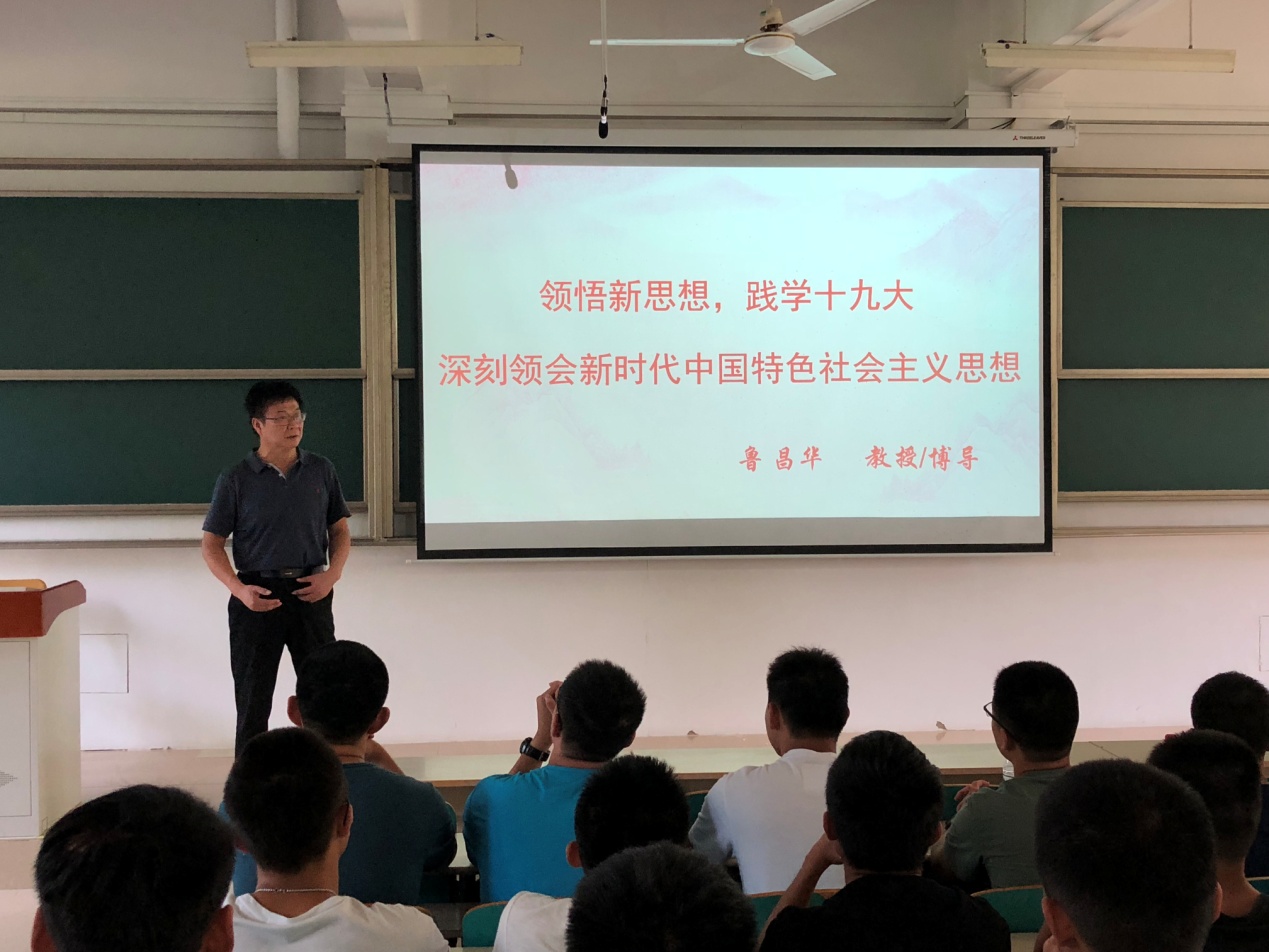 8月25日上午,公司党委书记鲁昌华老师在翡翠湖校区八教负09教室给全体2018级新生作“领悟新思想,践学十九大”专题报告会,鲁书记紧密围绕习近平新时代中国特色社会主义思想和党的十九大精神,结合学院特色,向新生讲解党的十九大会议主题“不忘初心,牢记使命,高举社会主义伟大旗帜”,引导员工用习近平新时代中国特色社会主义思想武装头脑、指导实践,扣好人生的第一粒扣子。