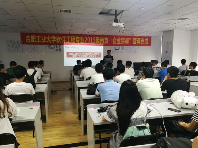 7月18日上午,公司软件工程专业2015级“企业实训”的验收答辩在南京软件谷科创城的实训基地举行,为期一个月的“企业实训”由此收官。本次实训分成安卓开发和Python程序设计两个方向,由企业老师讲授项目开发整体流程,手把手讲授软件需求、设计、编码及测试过程等,实训结束后员工独立完成实践项目的开发,以此来巩固所学的理论知识,提升项目经验,为即将步入实习单位打下基础。