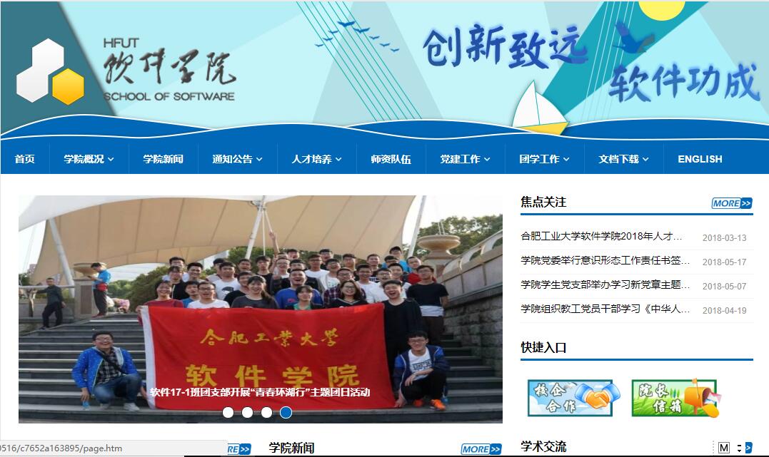 为推动学院信息化建设、做好对外宣传工作,在学院领导的高度重视和指导下,在学院员工会科创中心的技术支持下,经过前期的策划、编程和测试,并广泛听取师生的意见、建议,学院新版网站于5月16日正式上线运行,网站地址:rjxy.hfut.edu.cn。