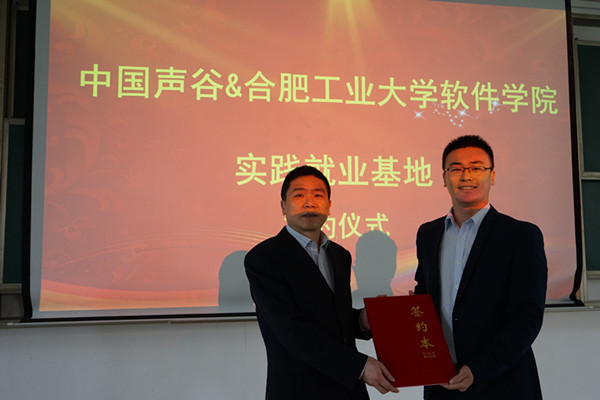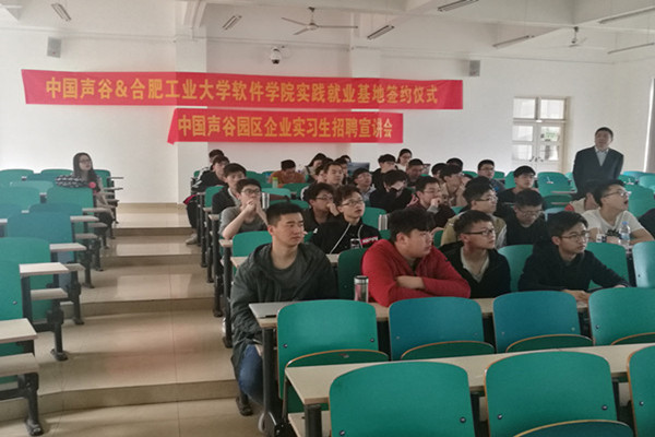 3月29日上午,中国声谷与williamhill官网的实践就业基地签约仪式在翡翠湖校区八教负09教室举行。中国声谷运营单位—安徽省信息产业投资控股有限公司人力资源部经理郭铁、公司党委副书记张炳武、中国声谷园区的相关企业代表以及williamhill官网的2015级员工参加了签约仪式。