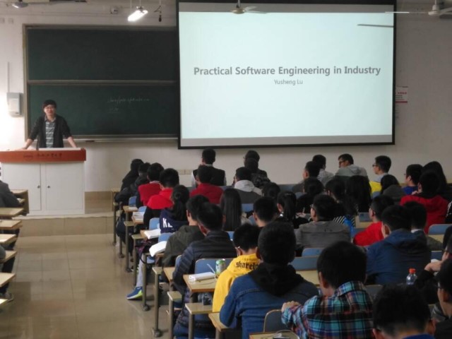 10月31日上午,在翡翠湖校区翠三教204举办了《软件工程在工业界的实践》报告会,报告会邀请的是williamhill官网2013届毕业生卢誉声,全体2017级新生聆听了此次报告会。