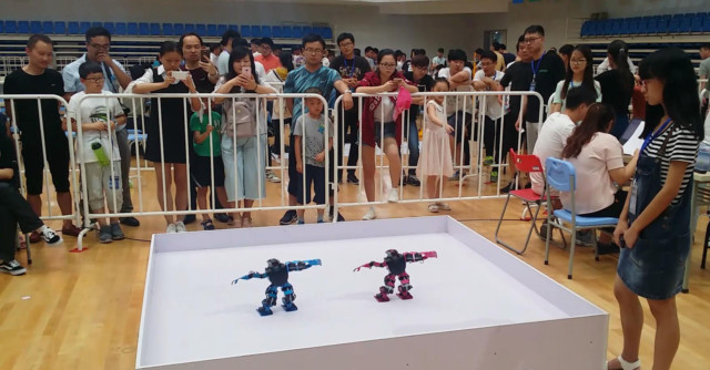 该项赛事由安徽省教育厅主办,合肥学院、威廉希尔中文官方网站、安徽省高等学校计算机教育研究会联合承办,合肥凌翔信息科技有限公司和安徽省人工智能学会协办。本赛设大学组比赛项目和青少年组比赛项目。其中大学组包含家庭服务机器人、RoboCup仿真2D组、RoboCup仿真3D组、仿人机器人短跑等13个比赛项目。青少年比赛含机器人救援、机器人足球等4个项目的比赛。该项赛事吸引了安徽省内外的40所本专科高校的近298支队伍和48所中小学130支队伍报名参赛,参赛选手近1400多人,赛事盛况空前。
