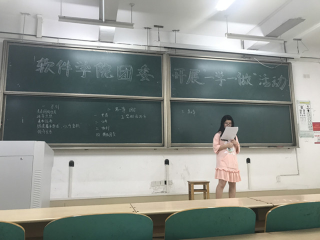 公司团委书记袁杨华老师首先结合“一学一做”教育实践活动开展,要求同学们加强了解共青团的相关知识,增强理论知识的储备并时刻保持团员的先进性和荣誉感,以高标准严要求来管理自己。随后,软件工程16-3班袁月同学向各位同学讲述了团章、团史相关内容,使同学们深刻了解了共青团员应该尽到的义务和享有的权利,明确了一名合格团员应具备的条件和准则,
