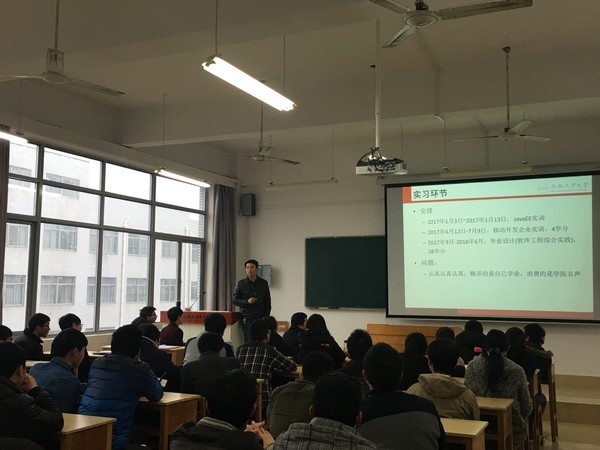 郑经理首先对如何抉择考研和就业进行分析,希望大家结合自身实际,无论是考研还是就业,同学们需要有一个明确的选择,并为此而努力。郑经理还就公司团队建设、软件学科发展进行了详细的介绍,使同学们对公司的学科更加了解,增强专业自信心。随后,他就大三之后的几项重要安排和大家说明,强调了实践的重要性。