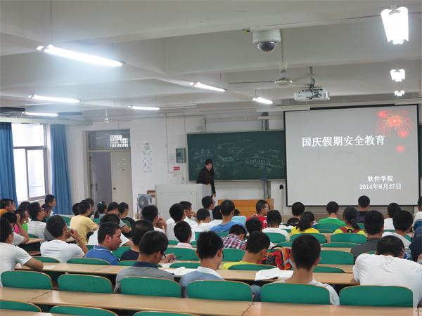 为贯彻学校关于国庆假期安全教育与管理工作的精神,确保同学们度过一个安全、愉快的十一假期。 9月27日上午,在翡翠湖校区5教202教室,williamhill官网2014级召开“国庆长假安全教育”主题班会,14级全体同学参加此次班会,由14级辅导员郑华老师主持。