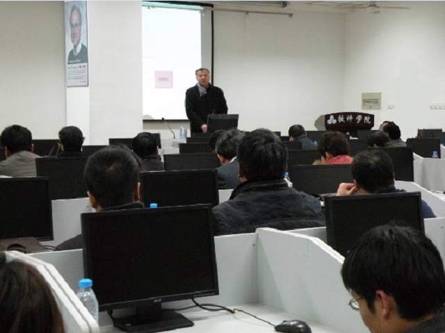经理鲁昌华教授首先就“软件工程本科专业人才培养体系”向与会人员做了全面汇报,重点介绍了“面向工程需求的课程体系,全方位实战型的多层次工程实践体系,优秀的工程型团队队伍,良好的校企合作产学研生态环境”的专业建设情况。