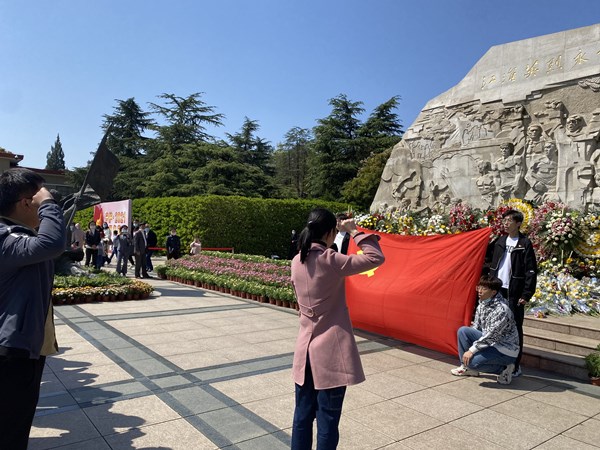 4月4日上午,员工党支部党员在辅导员郑华老师的带领下,来到大蜀山烈士陵园。鲜花献英烈,哀思祭忠魂。烈士纪念碑前,支部党员怀着沉痛的心情向革命烈士敬献鲜花、默哀致敬,深切缅怀先烈的丰功伟绩,追思他们英勇顽强、不怕牺牲、无私奉献、忠诚为民的崇高革命精神。郑华老师带领全体党员,面向党旗高举右手,重温入党誓词。