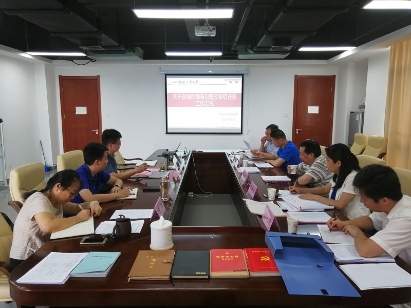 公司党委书记鲁昌华代表公司党委首先从学院关于巡视反馈意见整改专项工作目前的整体情况做了汇报,随后他从习近平新时代中国特色社会主义思想和党的十九大精神学习贯彻情况及成效等七个方面的巡视整改工作自查汇报。督查组实地查看了整改台账,并进行了反馈。