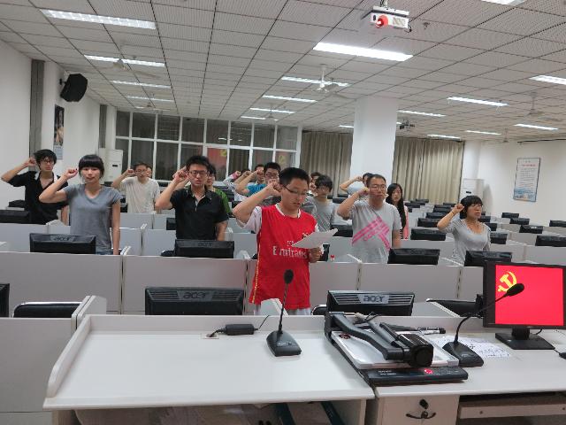 大会由袁杨华老师主持。会上,赵晓萌等8名预备党员逐一汇报了自己在预备期内对党的认识、入党动机、现实表现等;田浩等10名正式党员按照党员条件对八名同学能否按期转正进行讨论,并现场宣读票决结果;转正决议宣读之后,张世睿同学带领同学们重温入党誓词。
