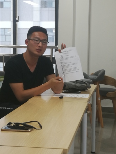 5月15日学院员工会邀请到2011级学长王泽源同学返校为所有员工干部开展了一场经验交流活动。
