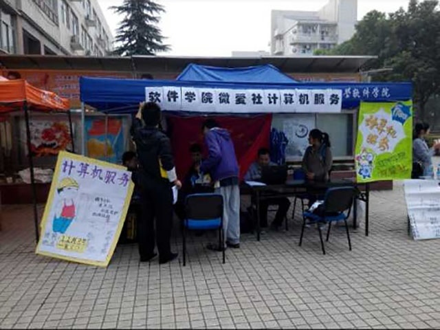 11月3日上午,于工大第一食堂前,聚集了一群人正紧张的工作。许多人不明白发生了什么,走上前看到宣传海报才知道,原来williamhill官网的“微爱社”正在举办名为“计算机服务”的活动。