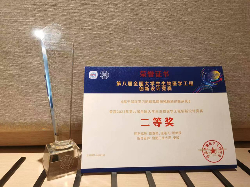 2023年7月23日,第八届全国老员工生物医学工程创新设计竞赛决赛在重庆大学落下帷幕,williamhill官网史骏老师指导的《基于深度学习的智能膀胱镜辅助诊断系统》项目团队在全国1536支队伍中脱颖而出,斩获国家级二等奖。